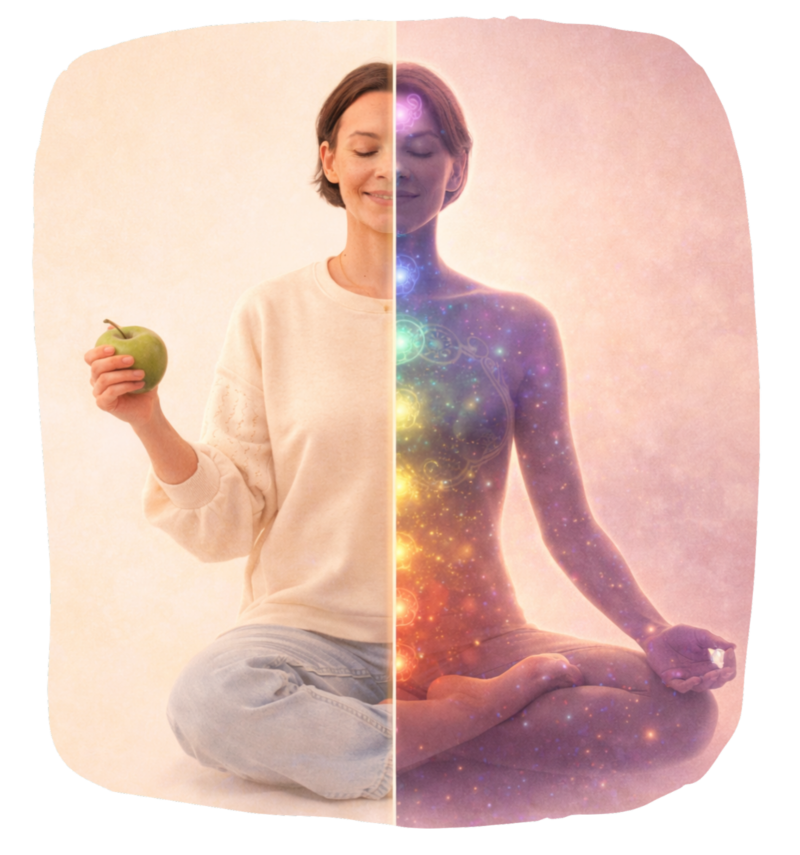 Met mijn achtergrond in gezondheidswetenschappen én als holistisch energetisch therapeut, combineer ik hoofd en hart, wetenschap en intuïtie. Body, Mind & Soul. Niet alleen door te praten of te analyseren, maar juist via stilte, adem, meditatie en visualisatie. Methoden die je helpen om uit je hoofd te komen en écht te voelen wat je nodig hebt. Zo verander je je eetgedrag niet vanuit wilskracht, maar vanuit verbinding met jezelf; vanuit helderheid, rust en vertrouwen.
